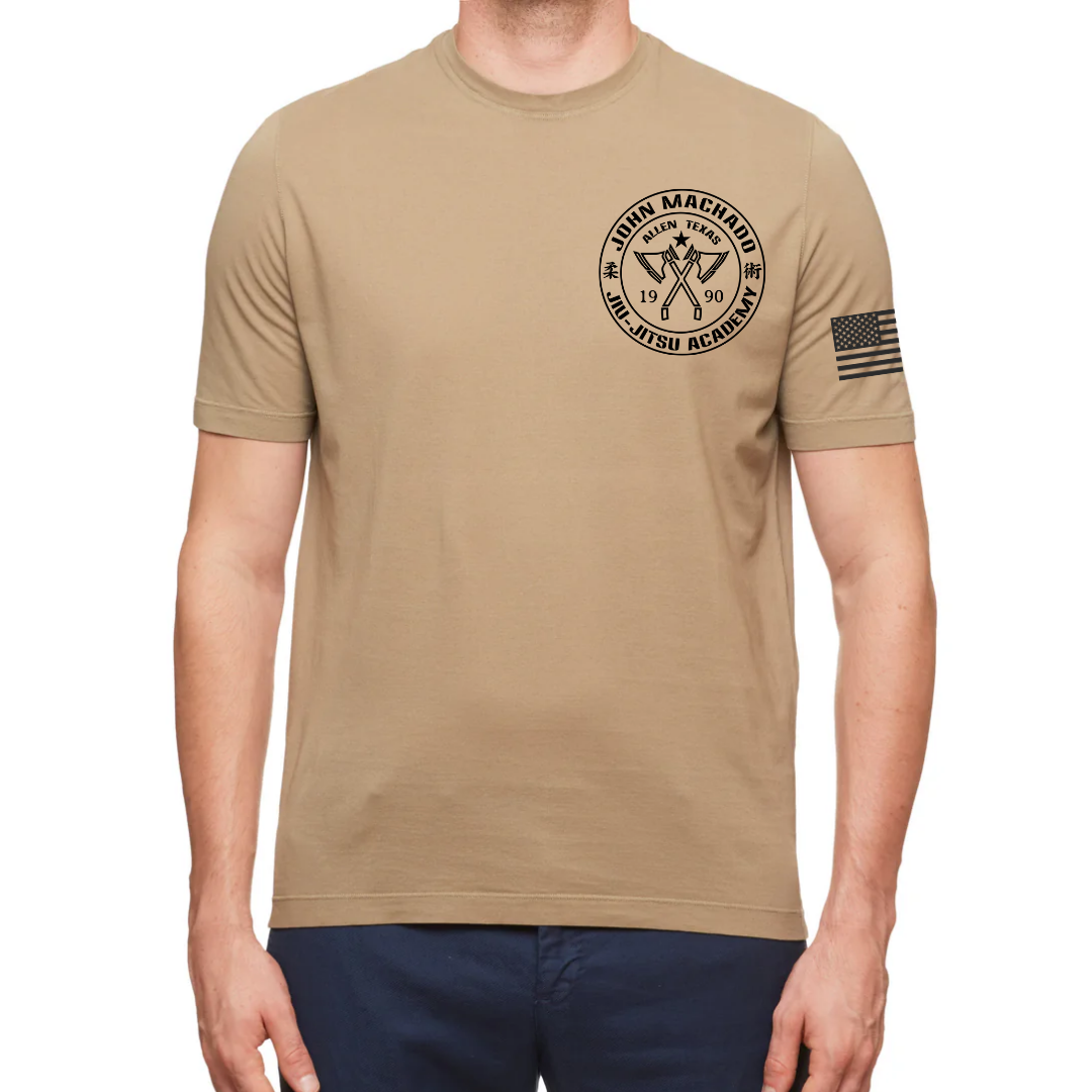 A soft quality tee with the JMBJJ logo on chest and the American flag on left shoulder.